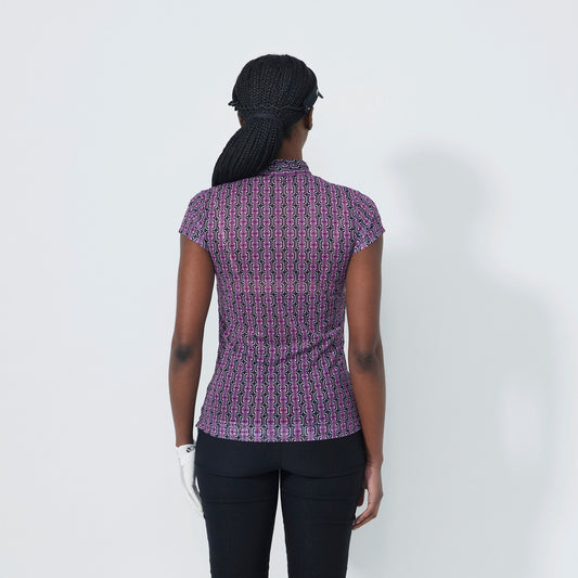 Daily Sports Abstract Fusion Breeze Delusion Black Print Cap Sleeve Mesh Polo