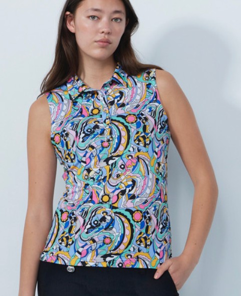 Daily Sports ARTIST Multi Mix Colorful Print Sleeveless Polo Shirt