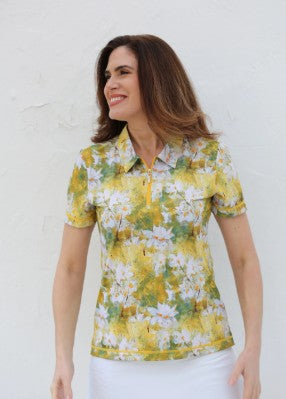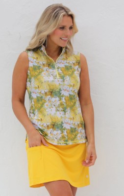 FAMARA DAISIES Sleeveless Mock Golf Shirt