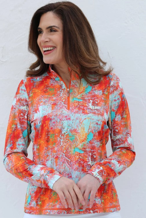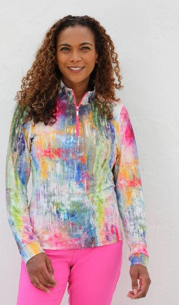 FAMARA MONET LONG SLEEVE MID LAYER GOLF SHIRT IN MONET