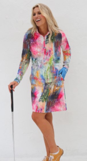 FAMARA MONET LONG SLEEVE DRESS GOLF SKATER IN MONET