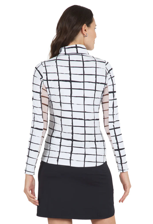 IBKUL Gingham Check Print Long Sleeve Mock Neck Top (Multiple Colors)
