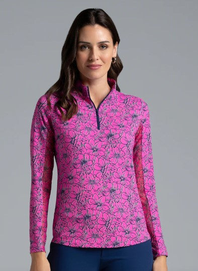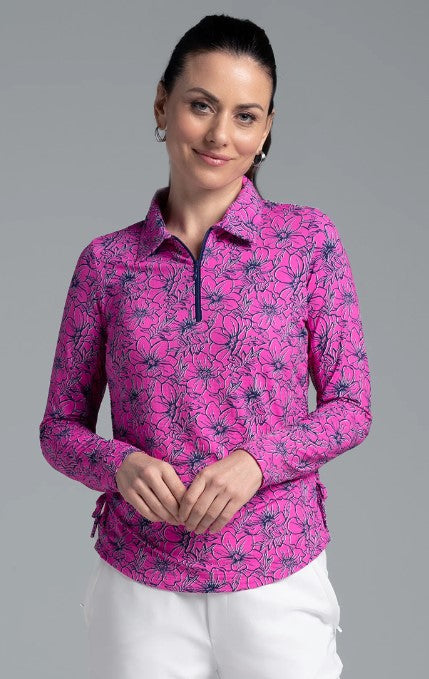 IBKUL Diana Print Adjustable Length Long Sleeve Polo (Multiple Colors)