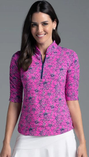 IBKUL Josie Print Tulip Sleeve Polo (Multiple Colors)