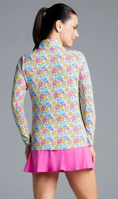 IBKUL Game On Print Long Sleeve Mock Neck Top