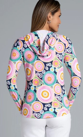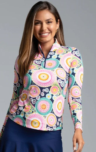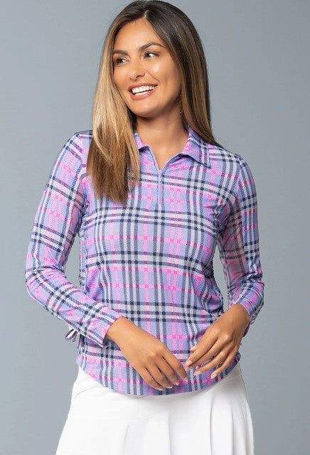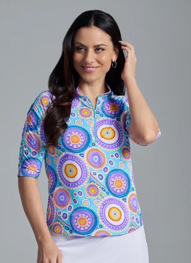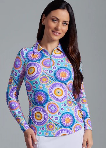 IBKUL Judith Print Adjustable Length Long Sleeve Polo (Multiple Colors)