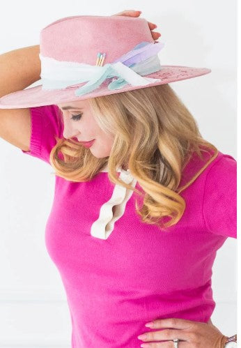 The Bubble Short Sleeve on Par Polo Sweater in Bright Pink White
