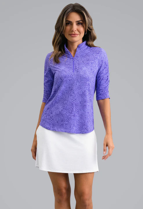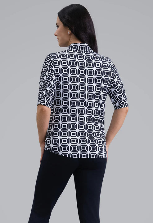 IBKUL Yun Ruched Elbow Sleeve Mandarin Collar Top