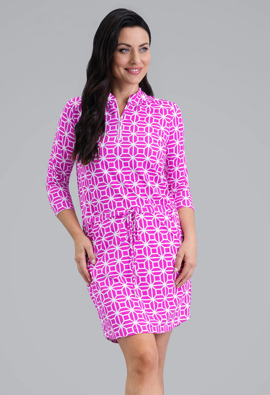 IBKUL Carolyn 3/4 Sleeve Drawstring Dress (Multiple Colors)