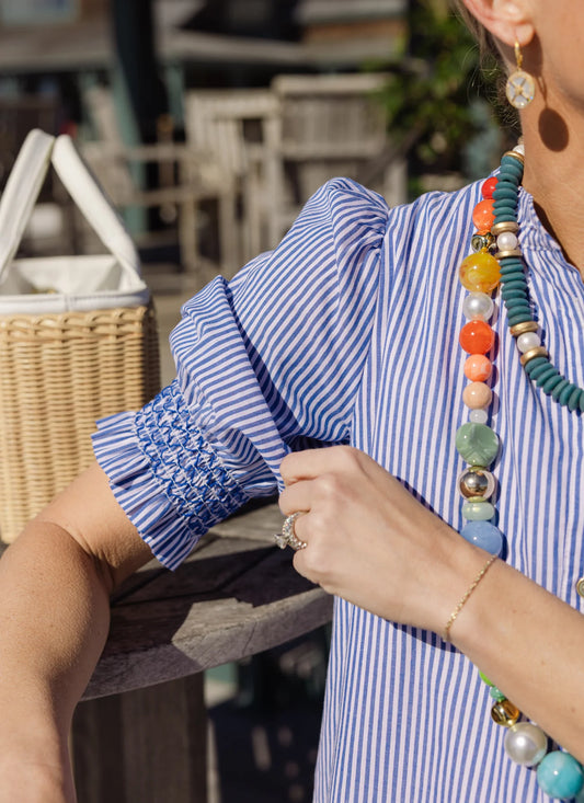 Duffield Lane Percy Popover 3/4 Sleeve Dress 35.5" in Navy & White Stripe