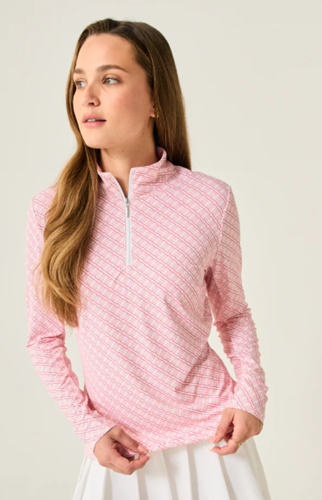 SanSoleil SolMelange 1/4 Zip Long Sleeve Stripe Mock