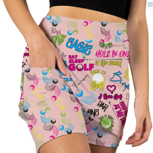 SKORT OBSESSION TEE TIME BLUSH GOLF SKORT 17"