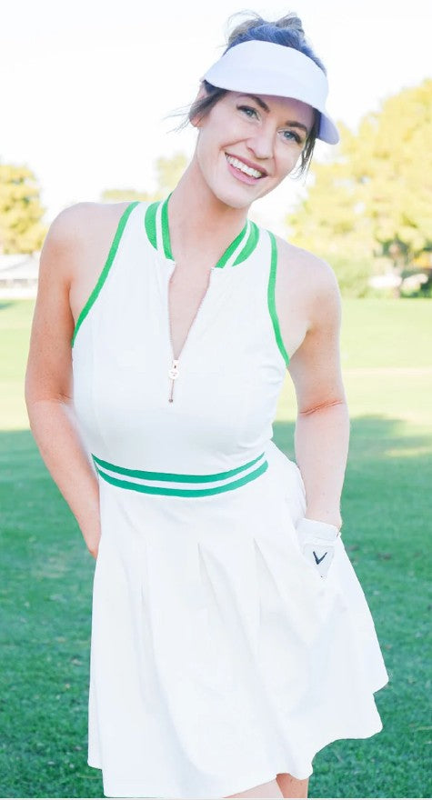 CALLIOPE Women's Golf SLEEVELESS RACERBACK DRESS Rae - WHITE/GREEN