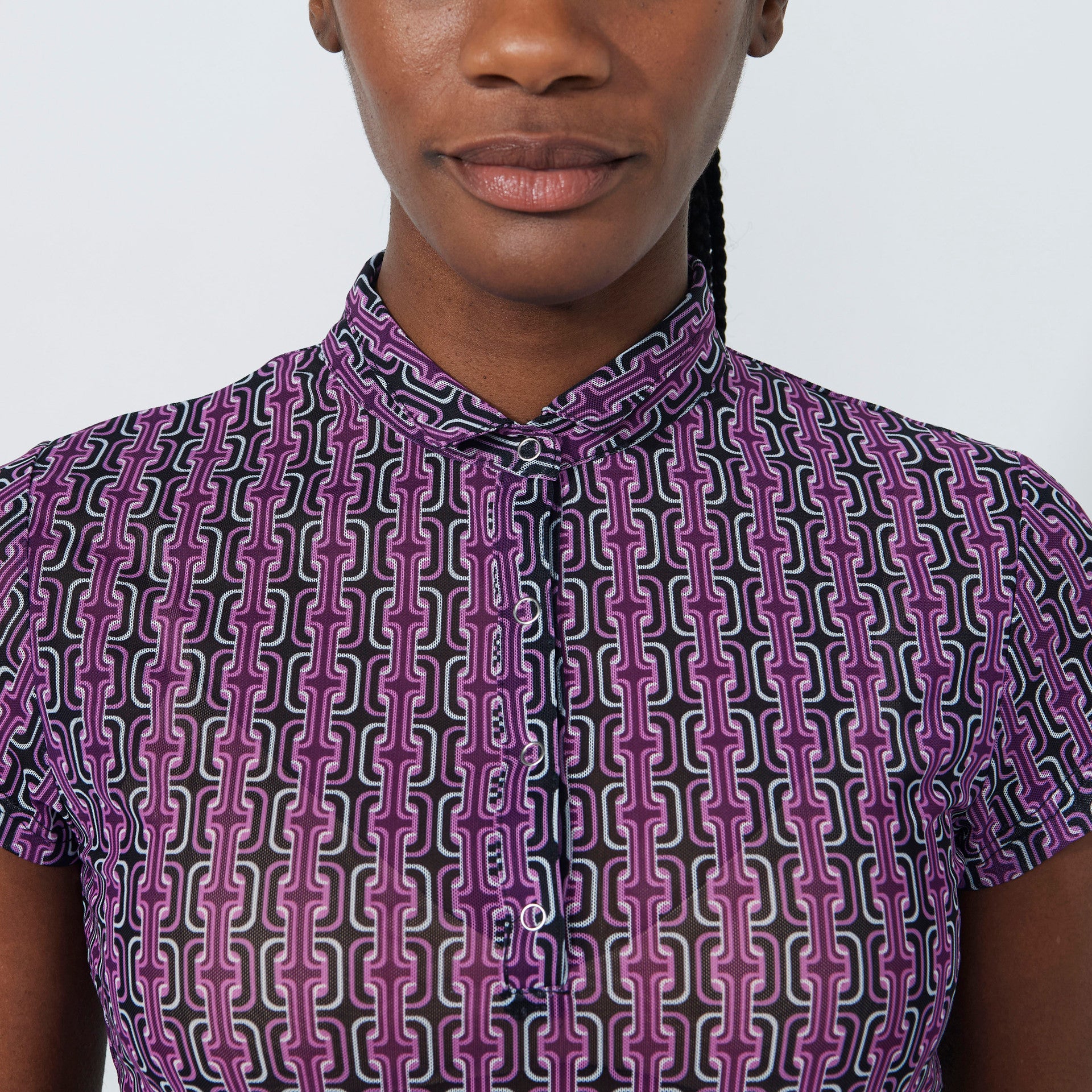 Daily Sports Abstract Fusion Breeze Delusion Black Print Cap Sleeve Mesh Polo
