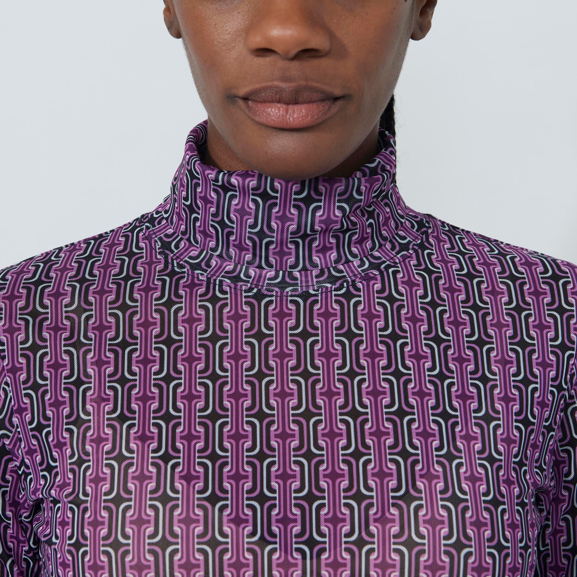 Daily Sports Abstract Fusion Breeze Roll Neck Delusion Print Long Sleeve Mesh Polo