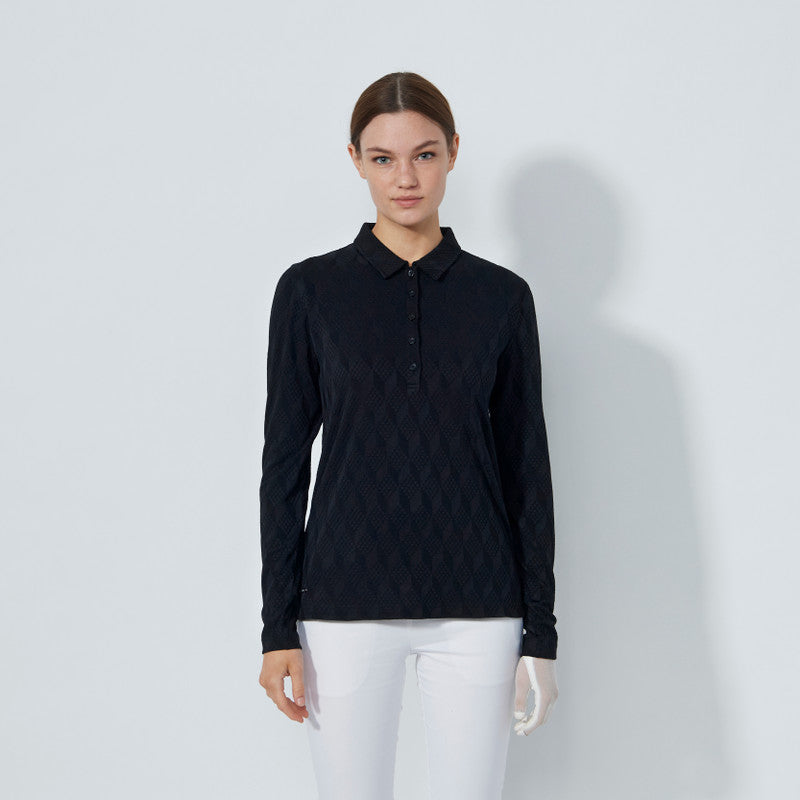 Daily Sports Women's Golf Graphic Jacquard Long Sleeve Polo - Black