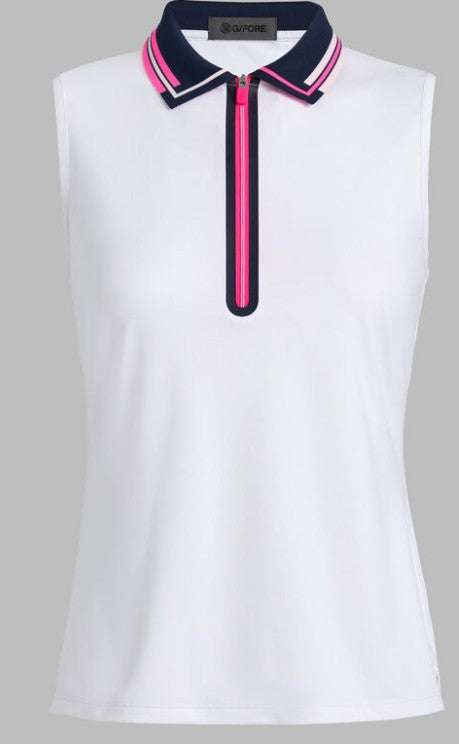G/FORE WOMEN'S GOLF SLEEVELESS POLO RIB COLLAR SILKY TECH PIQUÉ - SNOW