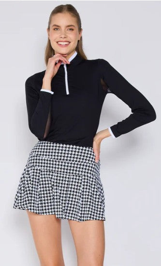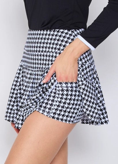 G Lifestyle Pleat Skort 13.5" in Black Houndstooth