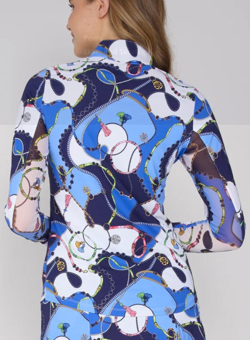 G Lifestyle Women's Golf Long Sleeve Top Quarter Zip -Blue Link