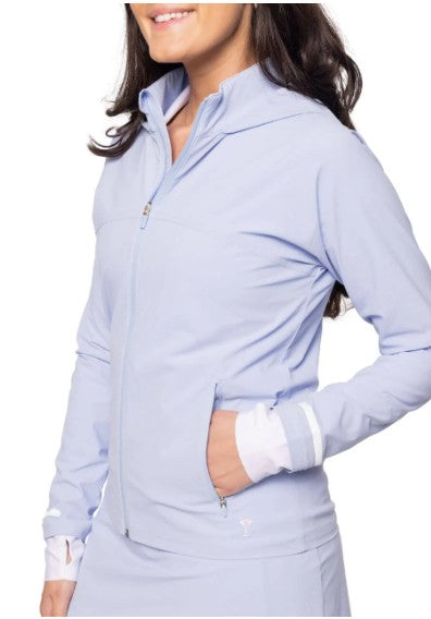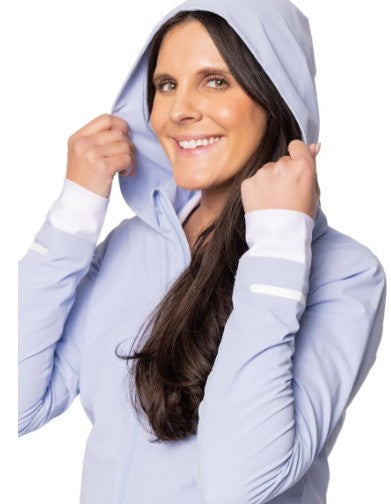 Golftini Women's Golf Jacket Hooded - Seersucker Blue, Kahki
