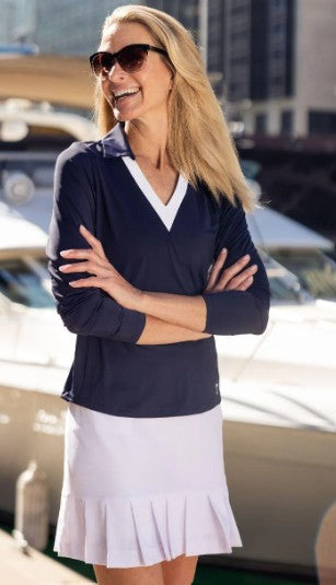 Golftini Women's Golf Long Sleeve Polo Say Yes - White, Navy