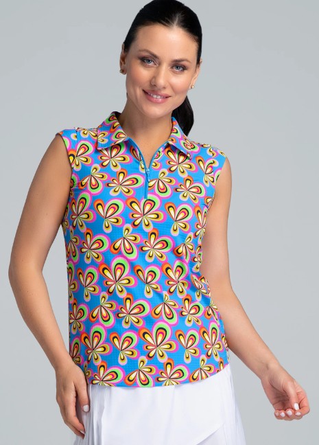 IBKUL Women's Golf Sleeveless Polo Arya Print - Turquoise Multi