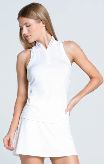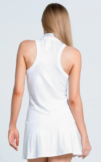 Lucky in Love Women's Golf Sleeveless Polo Seamless Textured Racer Back - WHITE, BAHA