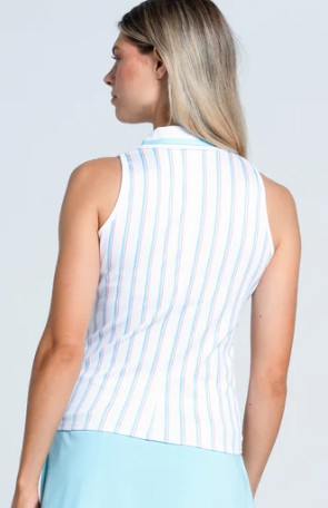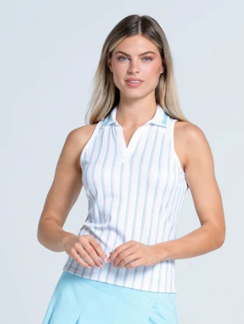 Lucky in Love Women's Golf Sleeveless Polo Stripe - WHITE