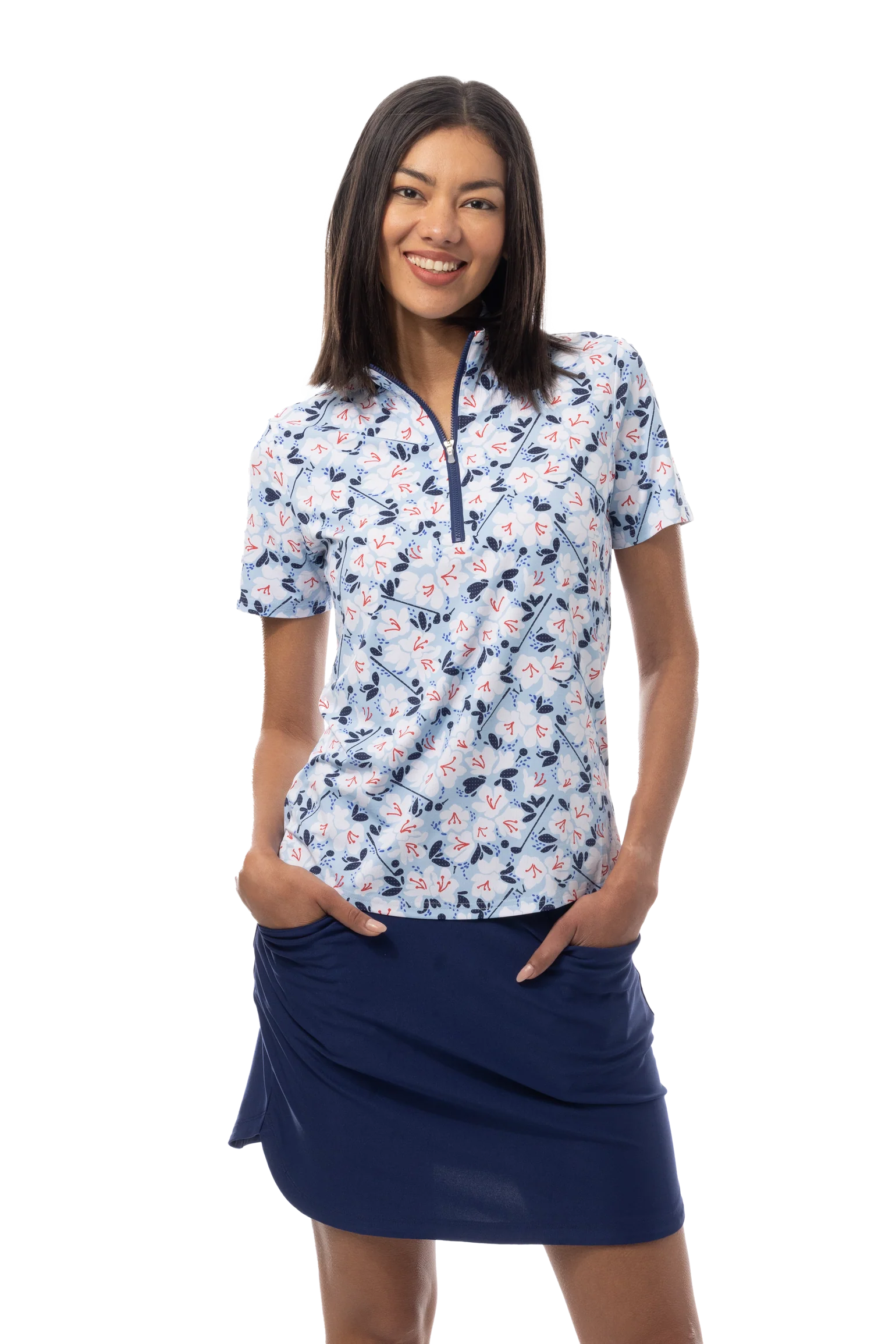 SanSoleil Women's Golf Short Sleeve Ultra-Mesh Zip Mock - Puttercup Blue