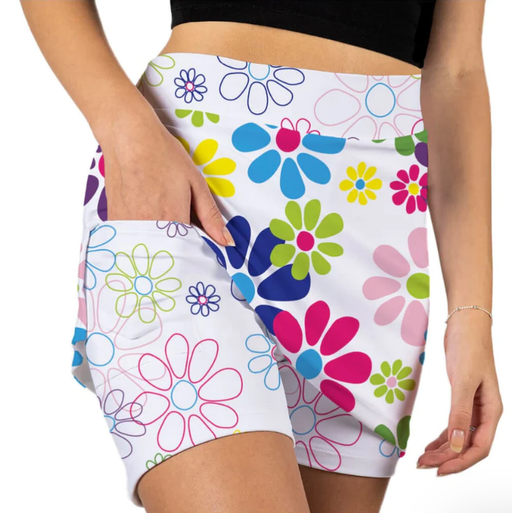 Skort Obsession Women's Golf Skort - Night Daisies White